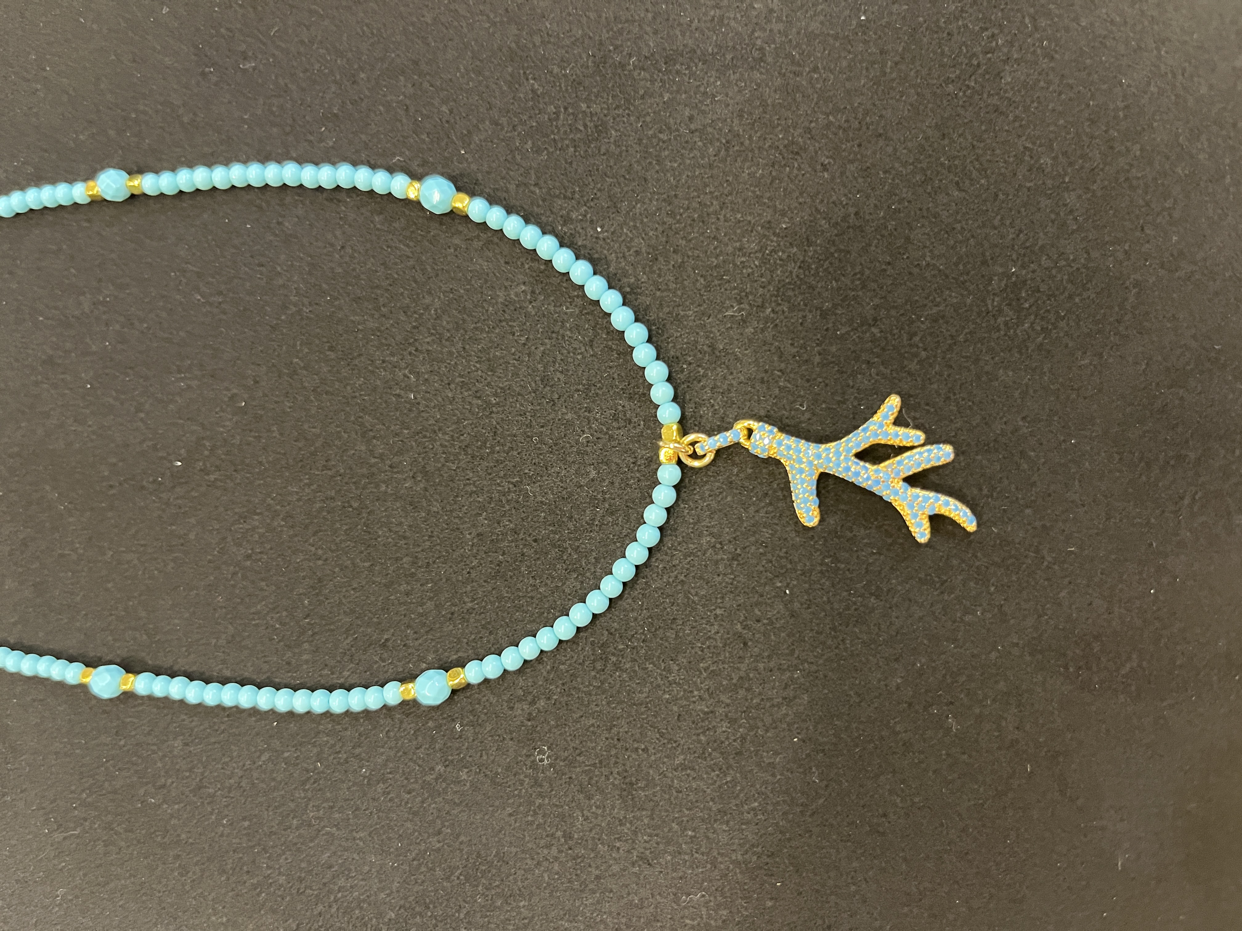Kette aus 925 Silber mit Türkisen und schönem Korallenanhänger. Vergoldet.