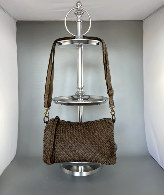 Schöne, angesagte Vintagetasche, die zugleich als Rucksack fungiert. Man kann sie als Umhängetasche oder als Rucksack tragen. Diese wunderschöne Tasche von Massimilianoincas aus Mailand ist aus weichem Leder in geflochtenem Design hergestellt und ist in unterschiedlichen Farben erhältlich. Es sind Farbabweichungen aufgrund von unterschiedlichen Monitoreinstellungen möglich.